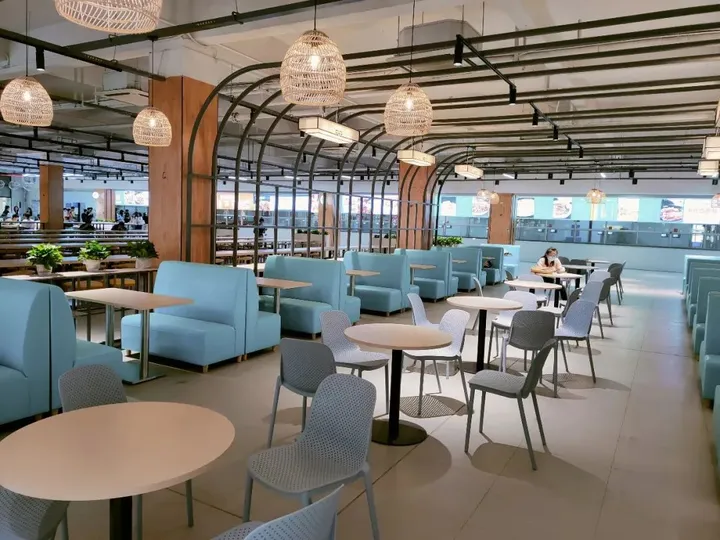 ? ? ? ? 該食堂原定位為平價保供食堂,以基本餐、平價快餐為主,只分米飯和粉類兩大板塊,食堂硬件設(shè)施較為落后,導(dǎo)致實際就餐人數(shù)少、餐桌使用率較低。經(jīng)改造后,現(xiàn)增加為七大板塊。一是保留大眾餐作為基本保供窗口,再以精品小炒提高檔次,此外新建特色窗口、面點窗口,兼顧早餐、面點、甜品類;再保留米粉保供窗口,以價格低、種類多為基礎(chǔ)定位新增面食窗口,最后還特別增設(shè)川渝風(fēng)味窗口,同時滿足不同區(qū)域飲食需求。除去七大板塊以外,還預(yù)留附加板塊作為特色套餐供應(yīng),滿足師生多元化需求,大大提升了食堂就餐人數(shù)。